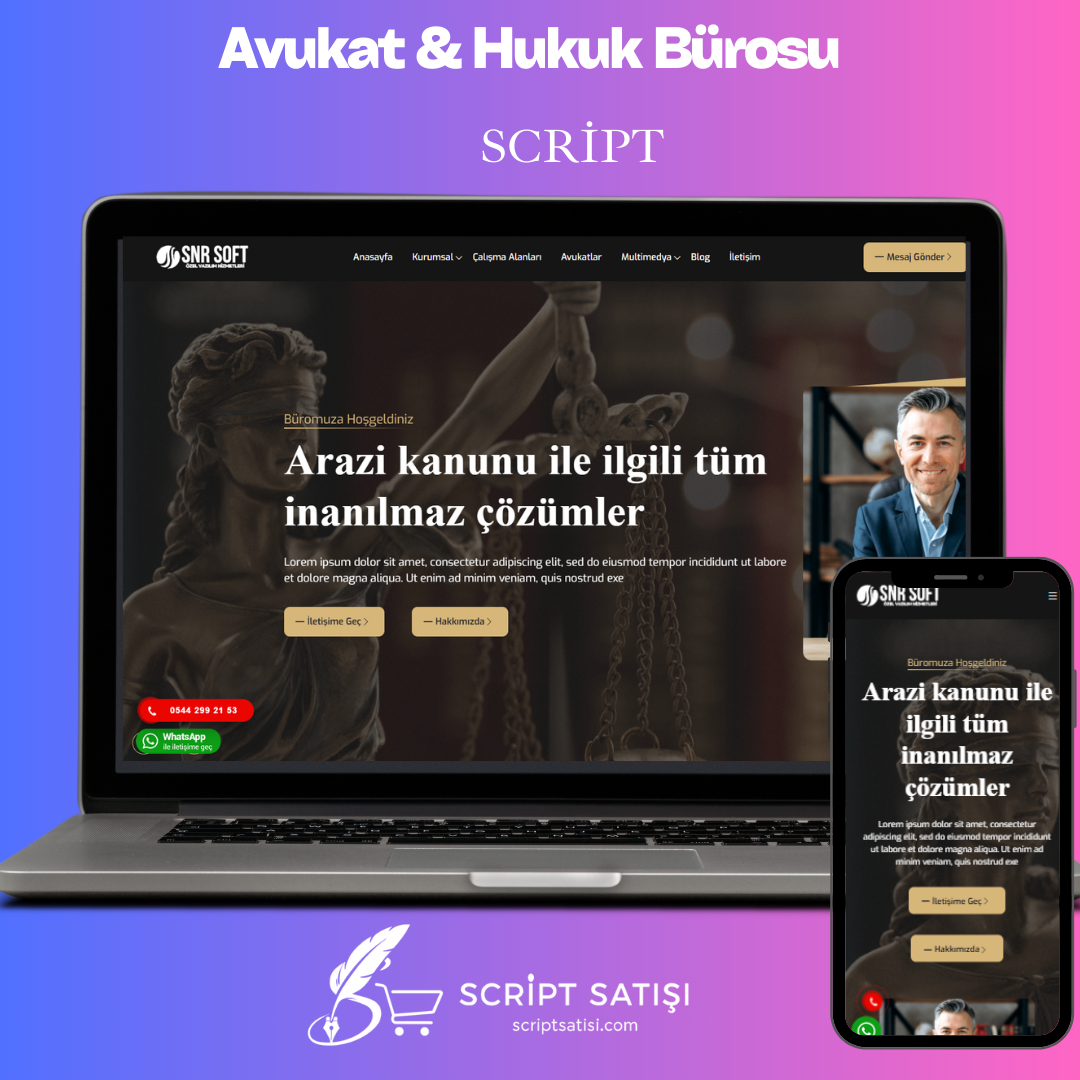 Bu script, hukuk bürolarının dijital ortamda güvenilir ve kurumsal bir kimlik oluşturması için ideal çözümdür.