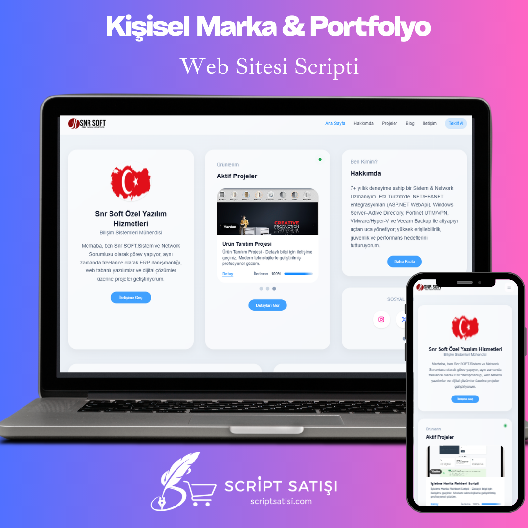 Kişisel Marka & Portfolyo Scripti 2025, yazılımcılar, freelancer’lar, danışmanlar, ajans sahipleri ve bireysel profesyoneller için özel olarak geliştirilmiş modern bir kişisel web sitesi altyapısıdır.